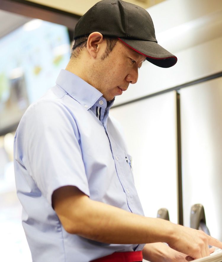 お客さまと接する仕事に興味があり、外食業界を志望していました。いくつもの企業をみたのですが、正直、印象に残っているのはKFCだけ。説明会のときに、一番、学生視点に立って話を聞いてくれたのです。その方に惹きつけられて入社を決めました。けれど、入社当初は戸惑うことばかり。はじめは、研修で習ったマニュアルを身につけるので精一杯でした。でもその後、マニュアルではなく、自分で「お客さまの満足」を考え続ける姿勢が大切だと気がつきました。例えば、ドリンクを注文しないお客さまに、さりげなくお水をお勧めしたり。お客さまの様子を見て店内の温度を調節したり。お客さまのニーズを注意深く汲み取り、何が心地良さなのかを考える。その難しさと面白さを実感したのが新人のときだと思います。