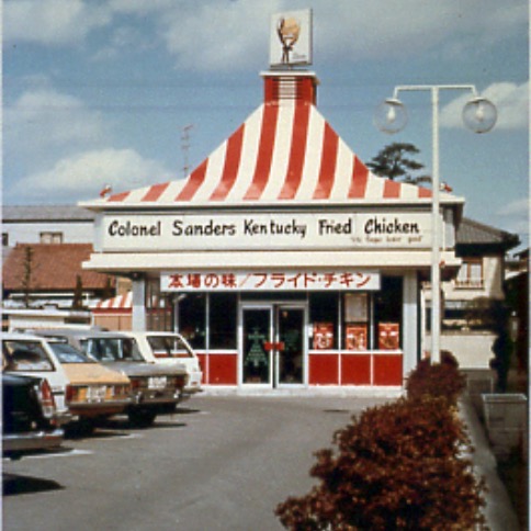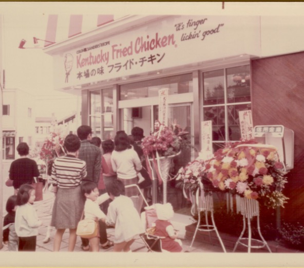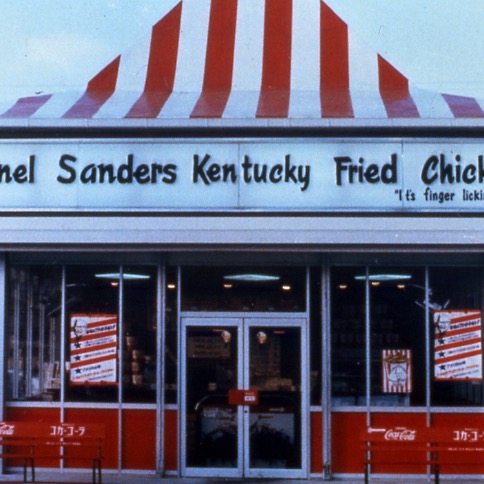 少しずつ暮らしが豊かになり始めた、当時の日本。でも、多くの人にとって外食は、家族で出かける贅沢な時間。今のように、街角でチキンやバーガーを買って食べるという感覚はありませんでした。それでも、オリジナルチキンの可能性に賭けて二号店を出店。けれど、業績は思わしくありません。当時の日本には、アメリカ型の郊外テイクアウトスタイルは難しいと判断。この学びから、四号店以降は、神戸、青山、目黒などの繁華街を中心に展開。戦略は成功し、1973年には100店舗に達するほどになったのです。